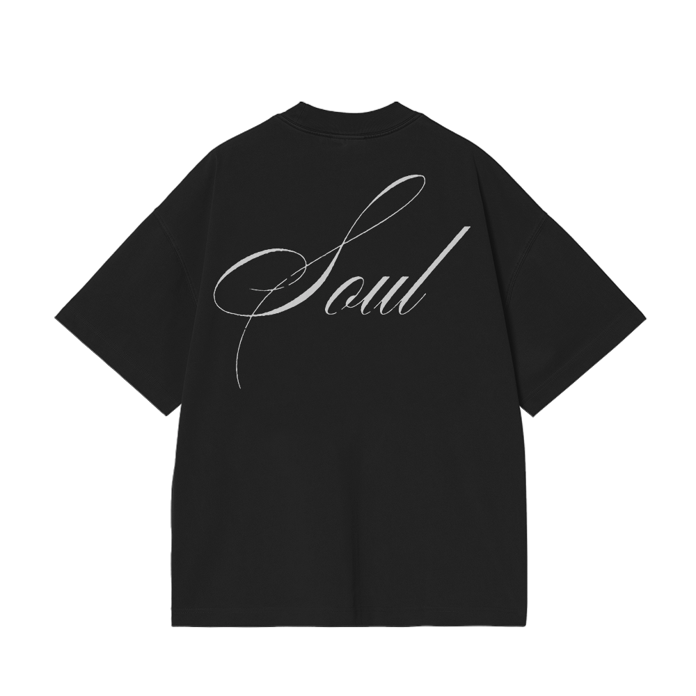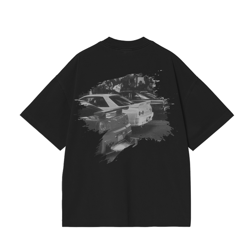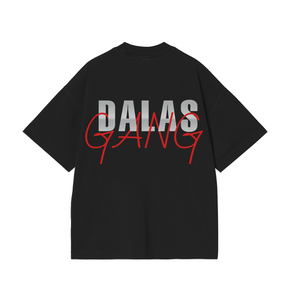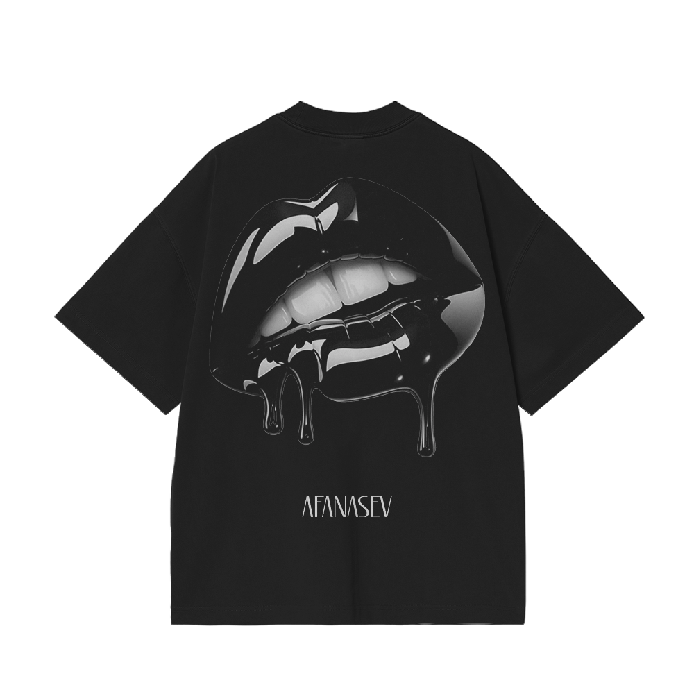 Черная оверсайз футболка с эффектным глянцевым принтом